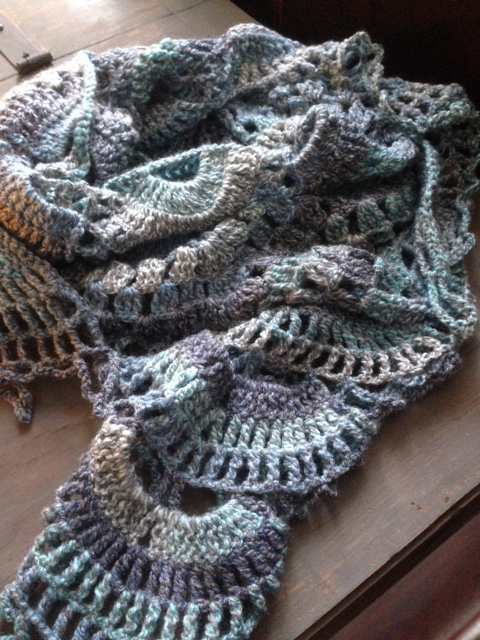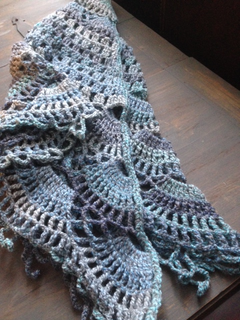 Waarom liep ik zo vast? Geen idee… Waarschijnlijk omdat het kleurverloop in combinatie met de haaksteken die ik gebruikte, de sjaal te druk maakte. Dus vanavond heel internet afgestruind naar iets dat me zou aanspreken en ik denk dat ik het gevonden heb… Een Russische sjaal, met een gratis patroon ook!