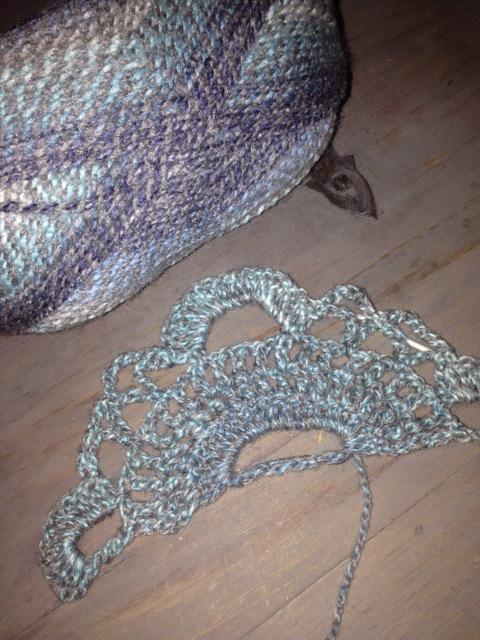 Ik zat even zonder inspiratie, had 2 bollen garen gekocht met kleurverloop, maar dacht je dat ik op iets leuks kon komen? Noop… Ben wel 10 keer gestart met een nieuwe sjaal/omslagdoek en heb het ook weer 10 keer uitgehaald…