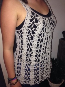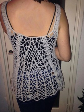 Tuurlijk heb ik wel eens een sjaal voor haar gehaakt en ook gebreid, maar een topje nog niet. Dus toen begon de zoektocht op internet en ja hoor, iets gevonden waarvan ze meteen enthousiast werd.