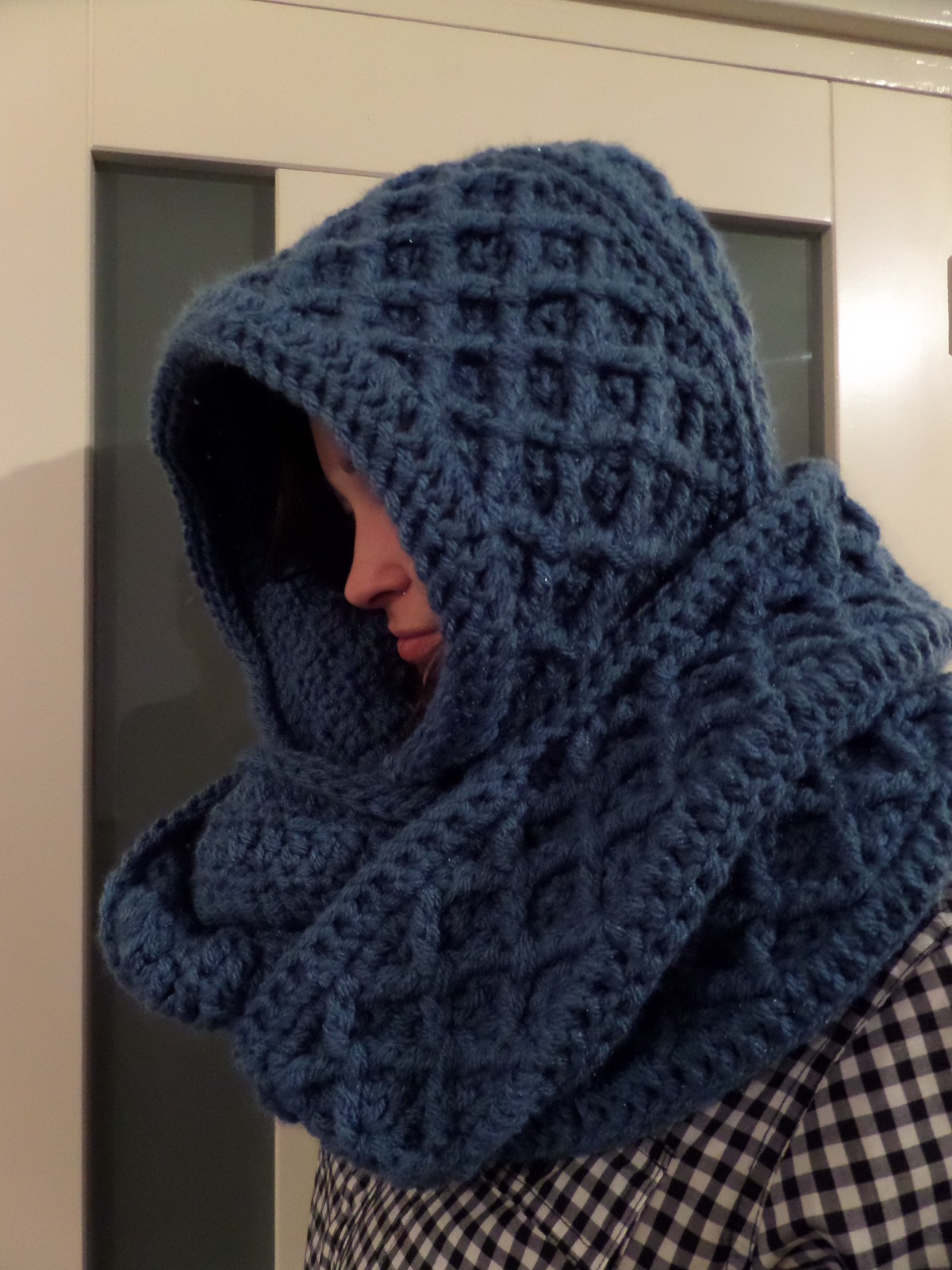 De Hoody-colsjaal is af, ik vind hem zooooo leuk geworden! En mijn mooie dochter wilde wel even model zijn…