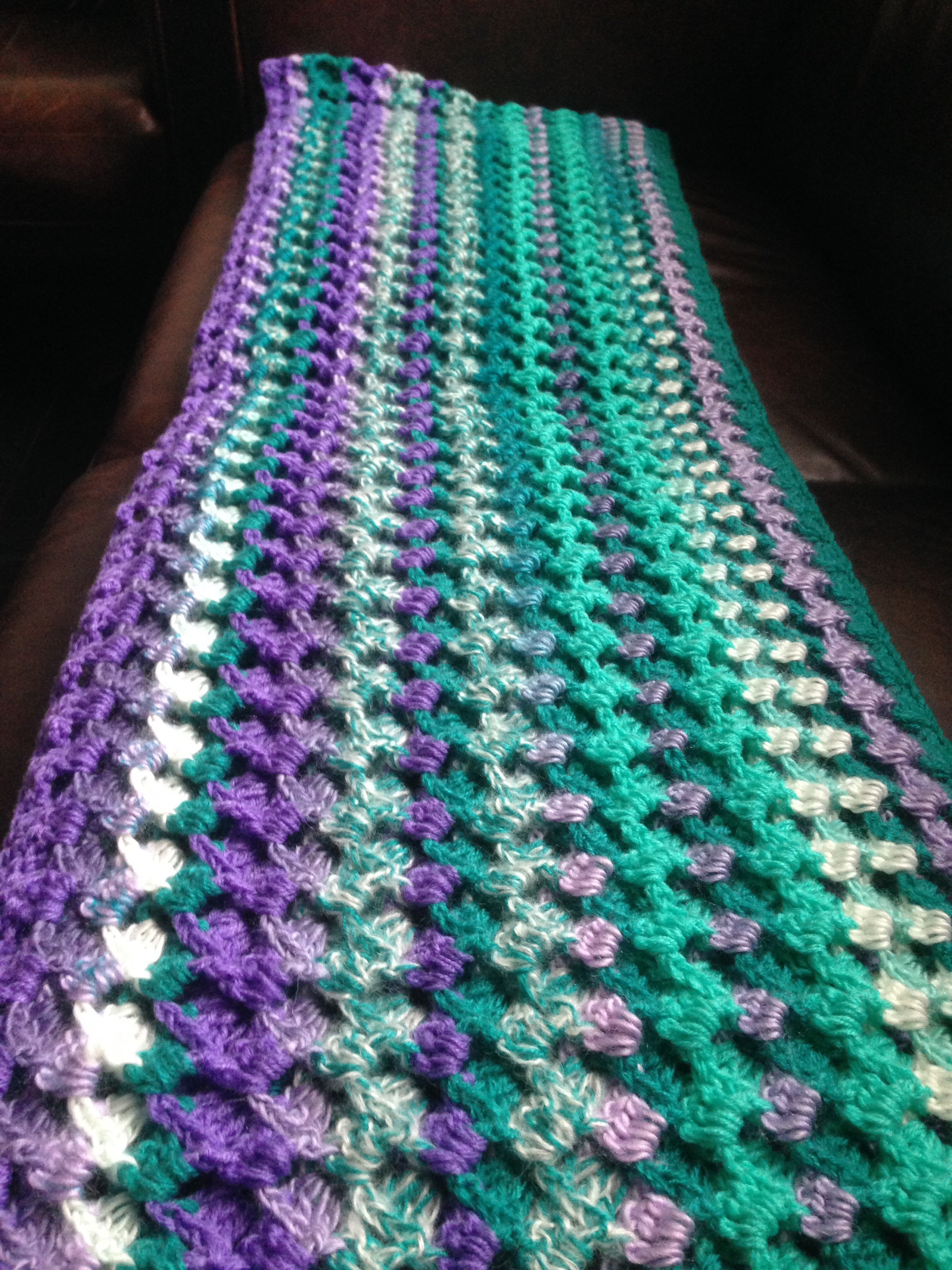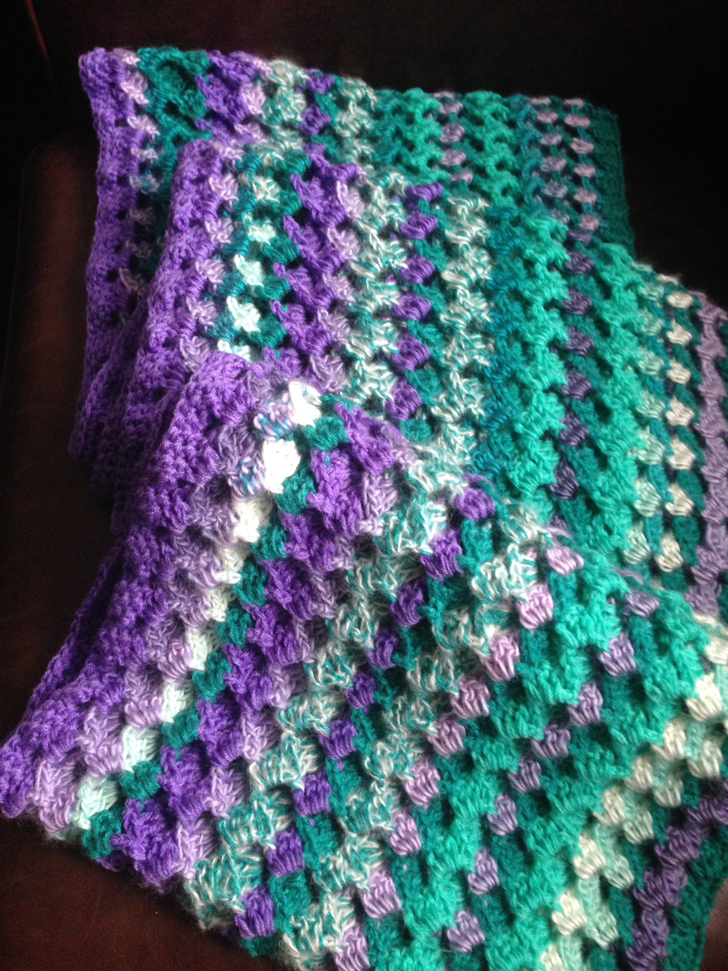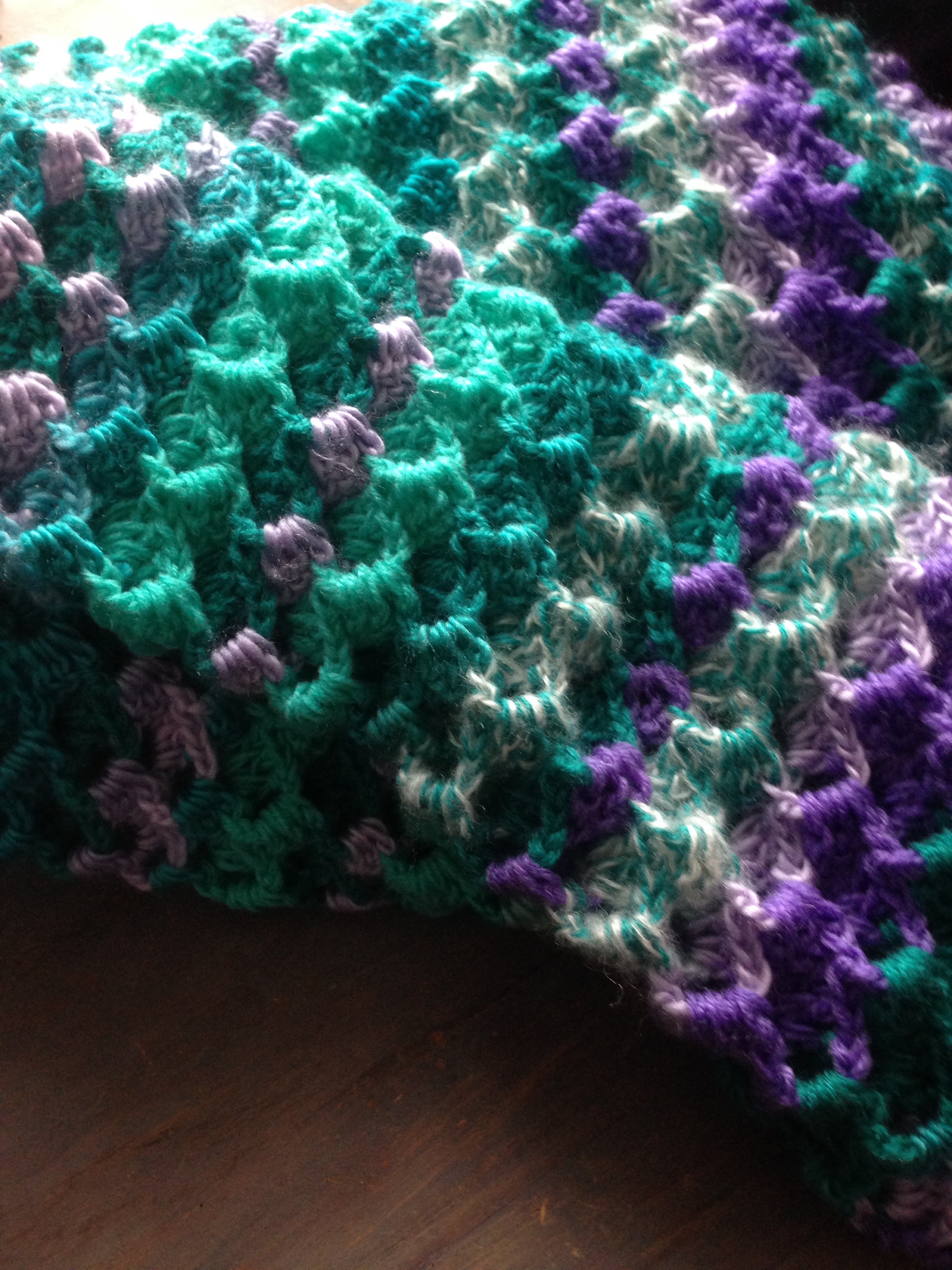 Op zoek naar een grove luchtige haaksteek op YouTube: HIER gevonden! Haken maar… oeps.. te weinig garen voor wat ik wilde: een GROTE loop-sjaal… de kast weer in, nog meer gevonden dat ik kon combineren en vandaag de sjaal afgemaakt en meteen omgedaan tuuk!