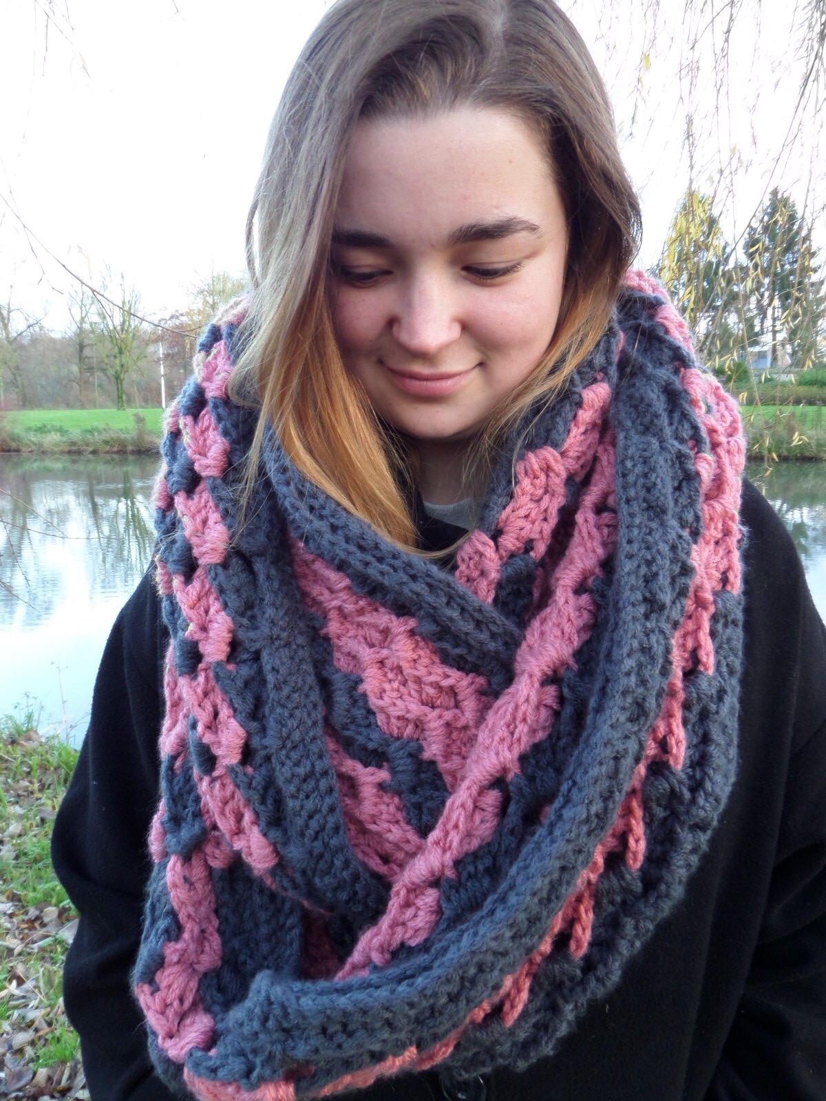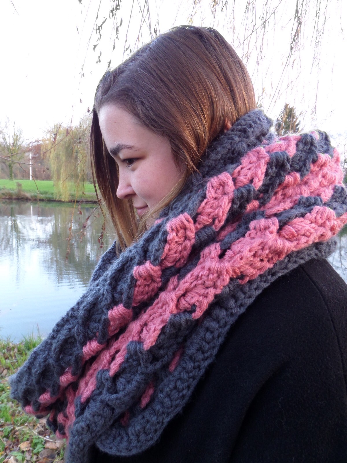 Superzacht, heerlijk warm en heerlijk nonchalant om te slaan, deze sjaal is met een grove 3D haaksteek gemaakt die ik al vaker heb gebruikt.