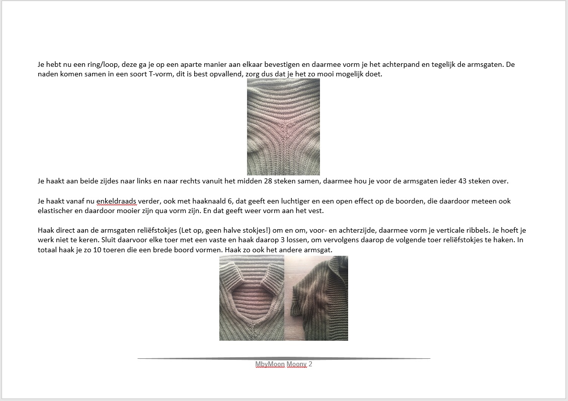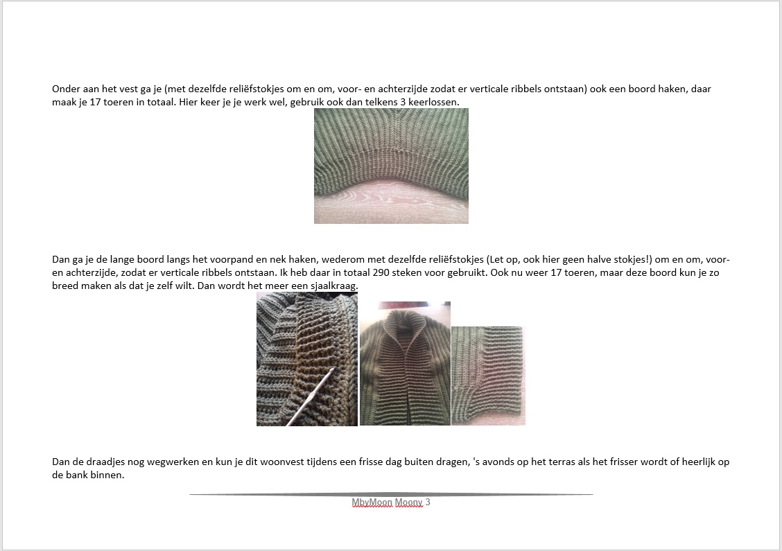 Ik heb mijn patroon deze keer in Word gemaakt en vervolgens als fotobestand verwerkt. Het zijn 3 delen met fotootjes voor de duidelijkheid.