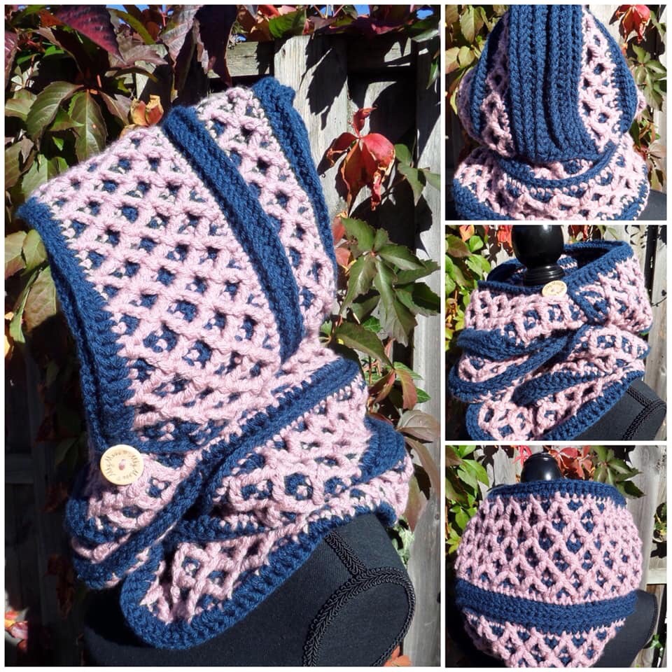 Maar mijn hoodycolsjaal Hoody in 2-kleuren haken, is toch een nieuwe uitdaging die ik graag aanging.