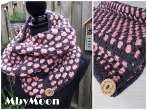 Van mijn Brooklyn vest had ik wat donkergrijs over, plus wat bolletjes washed denim roze, die ik ook nog had liggen. Van dit garen samen heb ik met een filmpje via YouTube van de Moroccan Tile Stitch dit moois gehaakt:
