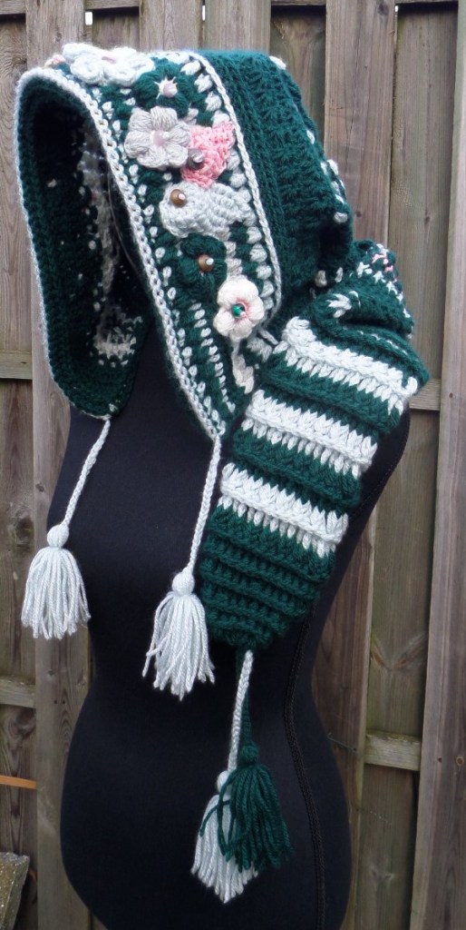 (VERKOCHT!) Gehaakte Scoody in 4 kleuren, een capuchon met een direct daaraan gehaakte sjaal die je heerlijk warm om je nek kunt slaan. Gehaakt met 100% acrylgaren in de leuke Bubblestitch. Ter info: het haakpatroon van Scoody is gratis te downloaden via https://mbymoon.com/gratis-patronen