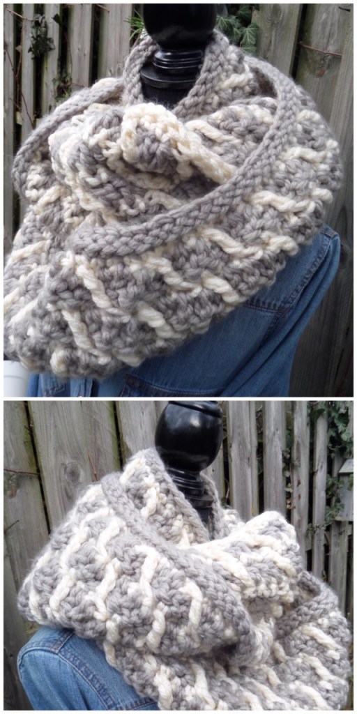 Gehaakte grove chunky colsjaal in crèmewit met grijs MbyMoon