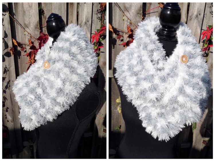 Ultra zachte fluffy colsjaal wit/grijs MbyMoon