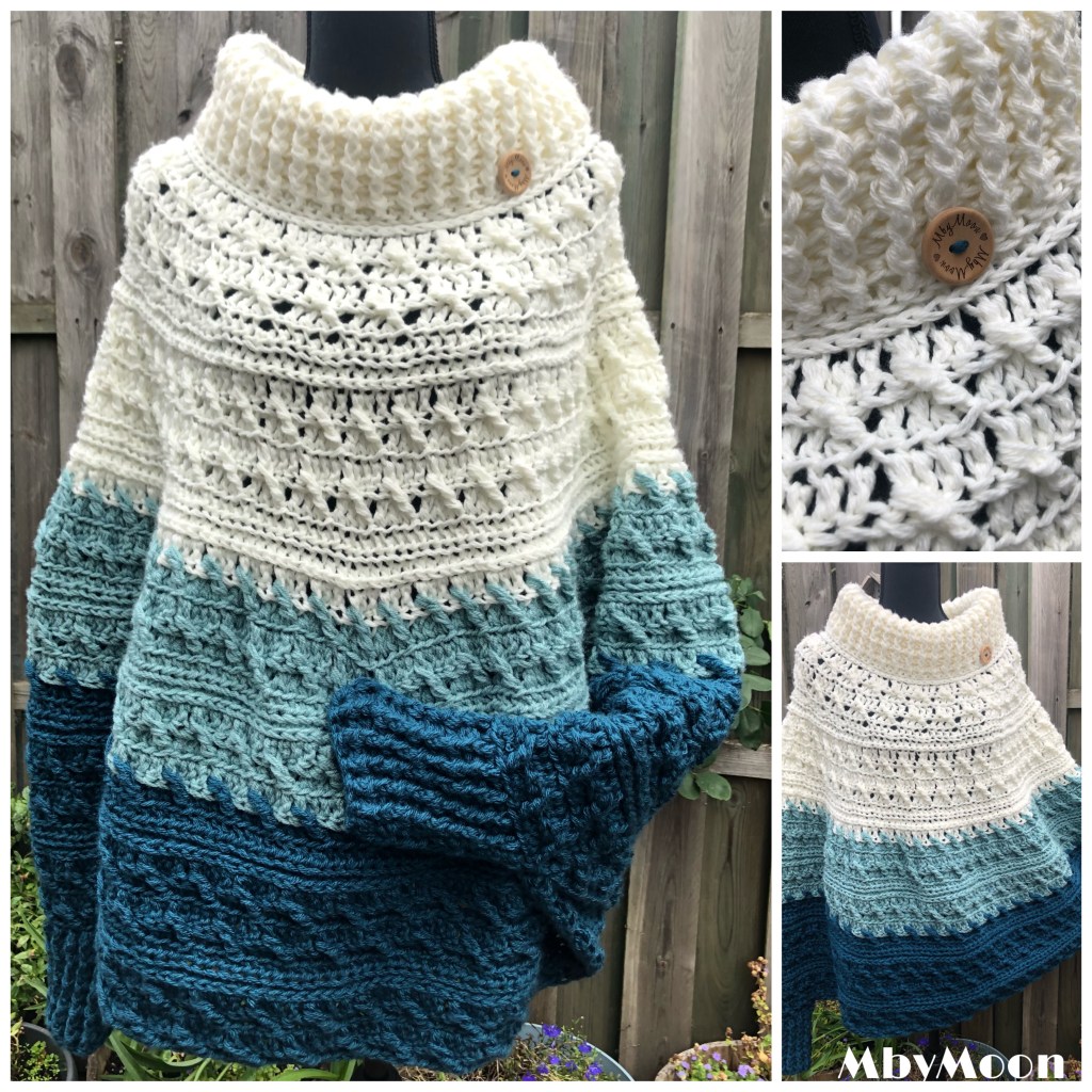 Dit patroon is voor maat S/M – L/XL – XXL uitgeschreven. Omdat het erg ruim valt met grote armsgaten, kun je deze ook als een soort poncho dragen. En met de pols/armwarmers erbij, maakt het dan helemaal warm compleet. Ik stuur je deze toe op het e-mailadres dat met de betaling bij mij binnenkomt. Kun je niet via PayPal betalen, stuur me dan een mail via mbymoon@outlook.com. Ik heb ook andere betaalmogelijkheden (via bankoverschrijving of een betaalverzoek/Tikkie)