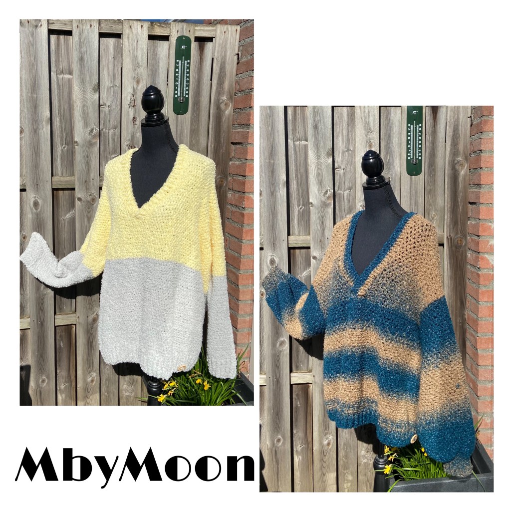 Dit patroon is in 2 maten uitgeschreven en geheel dubbeldraads met haaknaald 8 gehaakt. Het valt wijd en is daarom geschikt vanaf maat 36 t/m 44 en 44 t/m 50. Met tips van mijn testhaaksters! Ik stuur je deze toe op het e-mailadres dat met de betaling bij mij binnenkomt. Kun je niet via PayPal betalen, stuur me dan een mail via mbymoon@outlook.com. Ik heb ook andere betaalmogelijkheden (via bankoverschrijving of een betaalverzoek/Tikkie)
