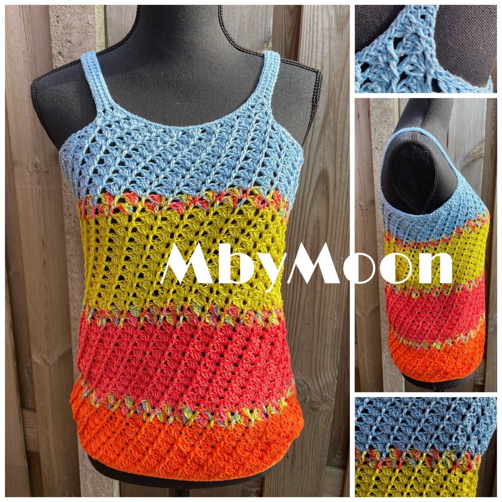 Deze top haak je niet standaard van boven naar beneden of andersom, maar eerst 2 stroken en dan aan weerszijde naar links en rechts. Het heeft een lichte a-lijn vorm, waardoor deze heerlijk draagt. Een duidelijk omschreven patroon dat ik je als PDF bestand in de mail toestuur na ontvangst van jouw betaling. Kun je niet via PayPal betalen, stuur me dan een mail via mbymoon@outlook.com. Ik heb ook andere betaalmogelijkheden (via bankoverschrijving of een betaalverzoek/Tikkie)