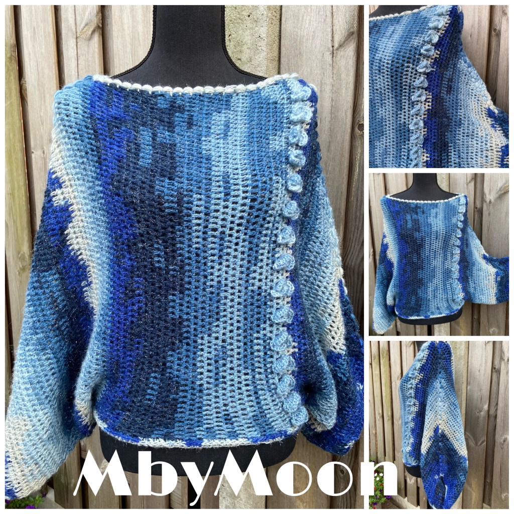Een heerlijk luchtige trui, perfect voor de lente of een frisse avond. Een duidelijk omschreven patroon voor maten L/XL dat ik je als PDF bestand in de mail toestuur na ontvangst van jouw betaling. Kun je niet via PayPal betalen, stuur me dan een mail via mbymoon@outlook.com. Ik heb ook andere betaalmogelijkheden (via bankoverschrijving of een betaalverzoek/Tikkie)